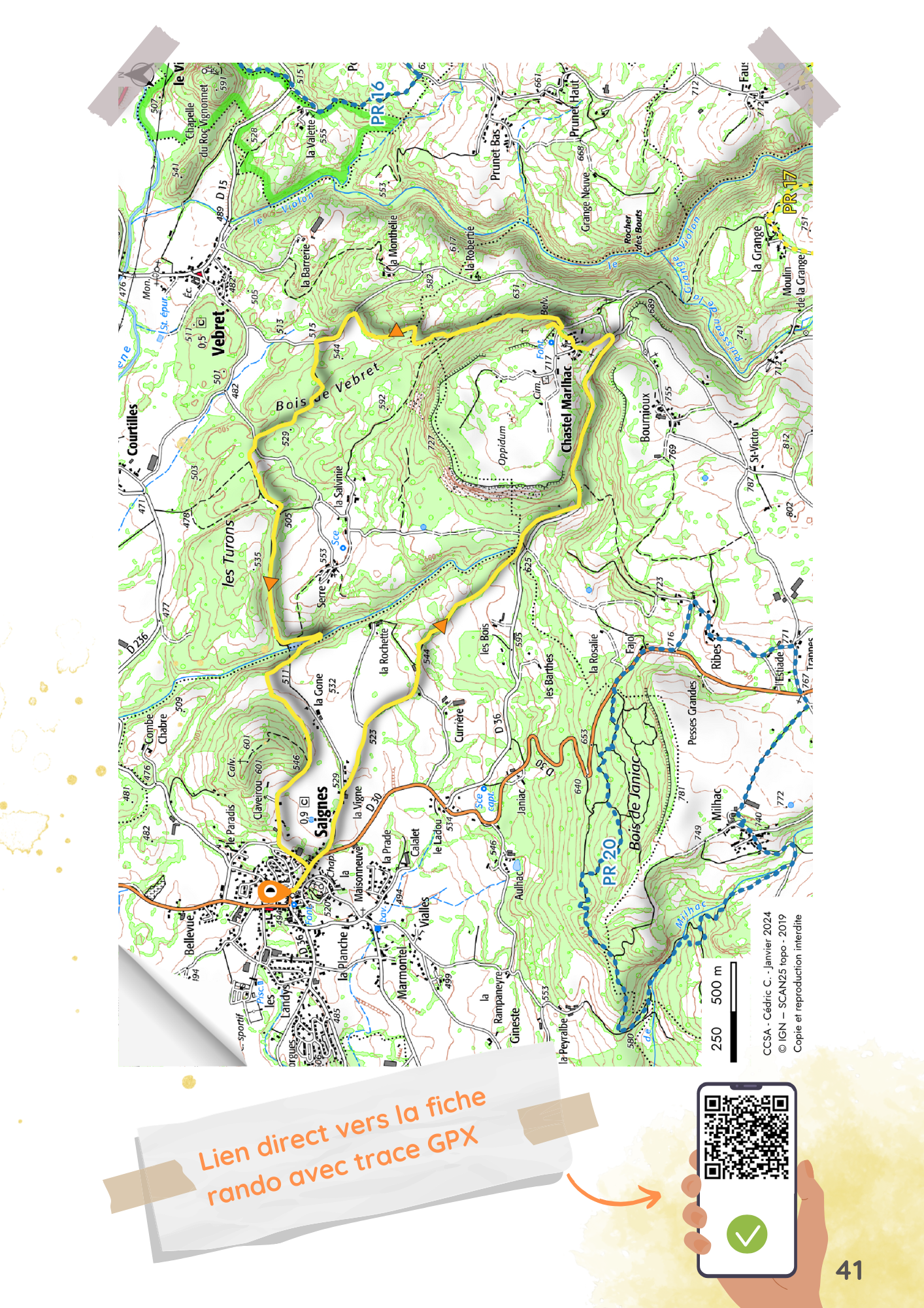 Lieu de départ : Place de la Poste à Saignes. Place de la poste à Saignes, prendre la D30 en direction du Monteil. Faire 300m puis bifurquer à gauche vers la Vigne.