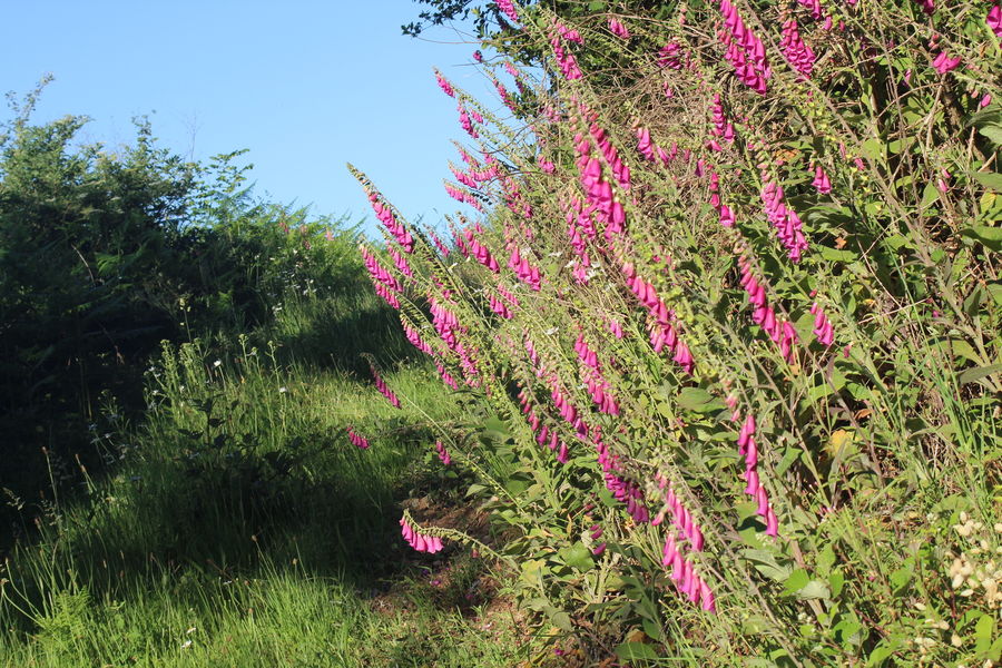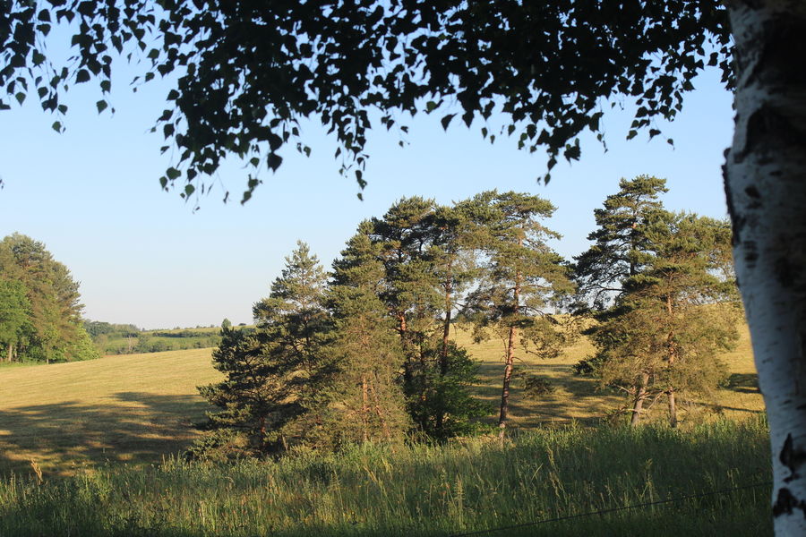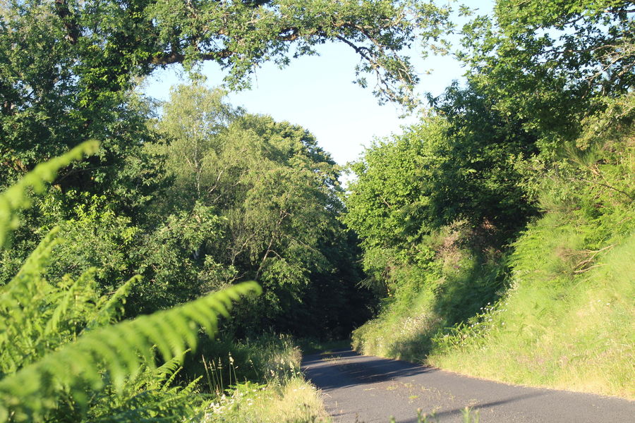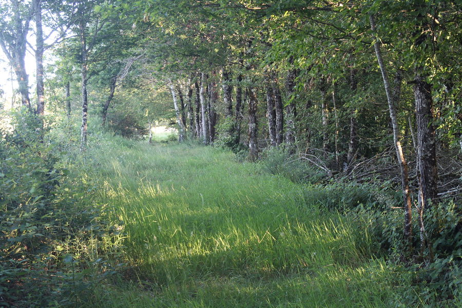 1-Tourner à droite 300m après les dernières maisons. Un petit chemin monte à travers bois pour atteindre une parcelle déboisée. Suivre la limite de ce bois. Arrivé au sommet, vous retrouvez un large chemin qui conduit jusqu'à la route.