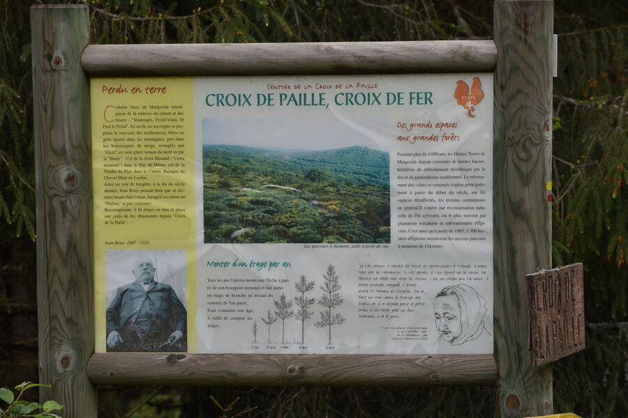 Sur l'itinéraire, des panneaux d’information renseignent le randonneur sur la nature et l’histoire de ce petit coin de Margeride, où la bête du Gévaudan fit quelques incursions meurtrières.