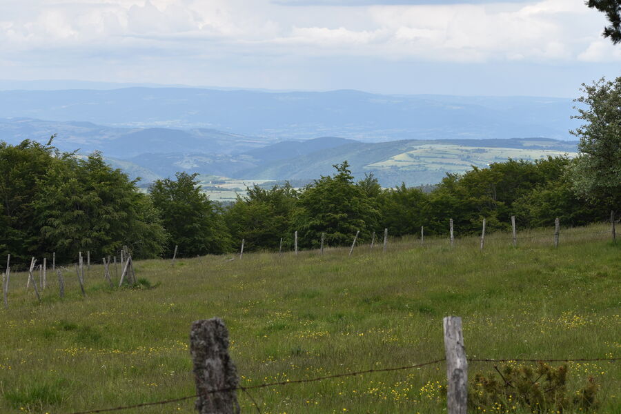 En option, détour possible jusqu’au rocher Chantal (1 370 m) avec vue exceptionnelle sur l’Aubrac et les Monts du Cantal. Compter une heure supplémentaire.