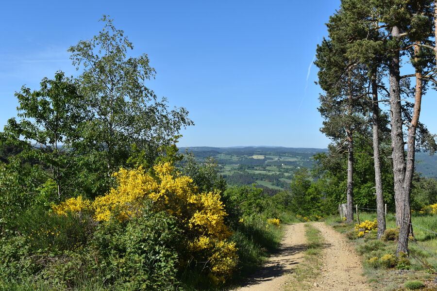 2) Laisser la route qui mène à Marcillac et poursuivre sur un chemin à droite. 100 m après, bifurquer à droite, puis descendre tout droit en laissant le chemin sur la gauche. Au croisement, prendre à gauche toujours en descendant, puis encore à gauche au croisement suivant pour atteindre le ruisseau. Traverser le ruisseau du Bousquet.