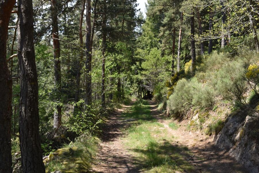 D) Départ du domaine du village d’Estrémiac, prendre la route sur 400 m. Prendre un chemin sur la droite qui descend dans un bois de pins.