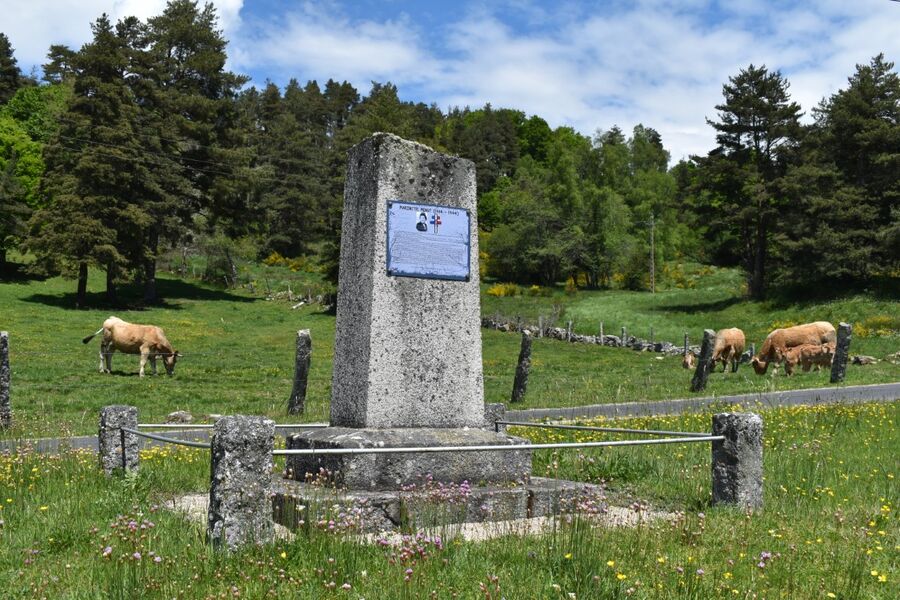 1) En descendant à travers le petit bois d’épicéas, on débouche sur une route qui mène au croisement où est implanté un monument du souvenir. Cette stèle rappelle des évènements tragiques qui se sont déroulés à Saint-Just le 22 juin 1944. Un convoi de maquisards blessés, transportés dans des chars à bœufs, s’est replié, grâce à l’aide de gens du pays, face à l’attaque de colonnes allemandes, jusqu’à Saint-Just. Dans ce village, des blessés ainsi que des médecins et infirmières qui les accompagnaient ont été sauvagement assassinés.
