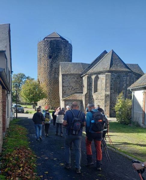 D : Se garer devant la tour. Dos à celle-ci, remonter la rue en gardant la mairie à main droite. Au croisement, prendre à droite. Rejoindre « La Pierre Plate » par la route.