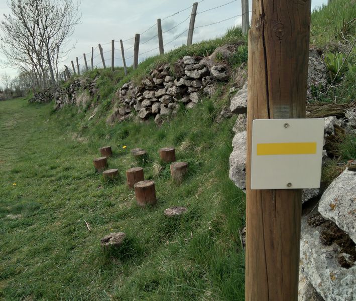 5- A la patte-d’oie, prendre à gauche ; plus loin se diriger à gauche vers une bâtisse et traverser une prairie. Suivre la route à droite. Se diriger vers l’aérodrome de Saint-Flour- Coltines.