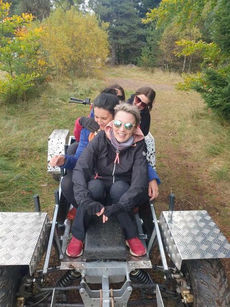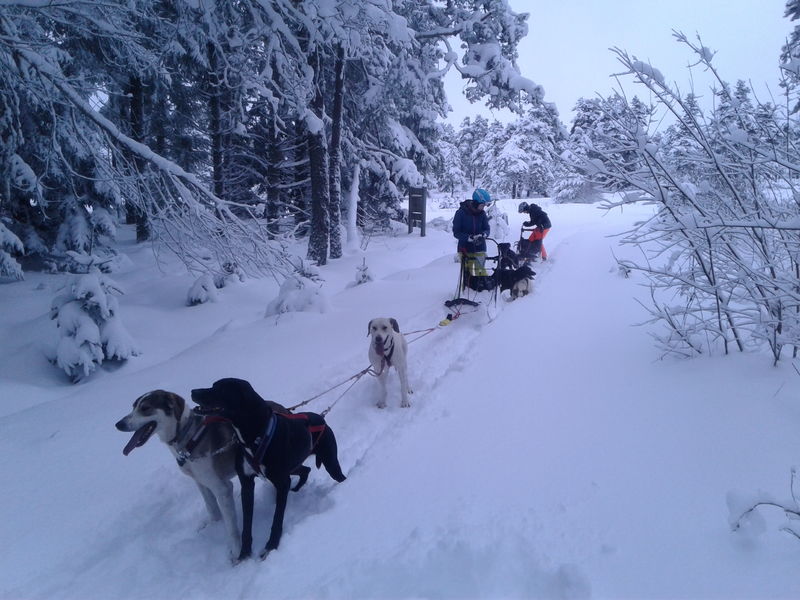 _ Après avoir fait connaissance avec la meute et reçu des conseils, le musher organise votre attelage. La première appréhension dissipée, nous glissons/roulons/marchons vers les grands espaces de la forêt de la Pinatelle, la Laponie du Cantal ! Ce massif est réputé pour sa faune (cervidés, oiseaux, écureuils...), sa flore (Gentiane jaune, Andromède, Canneberge, ...), ses odeurs de pinède et sa lumière du jour qui se répand au travers de ses branchages, donnant une atmosphère protectrice et chaleureuse.