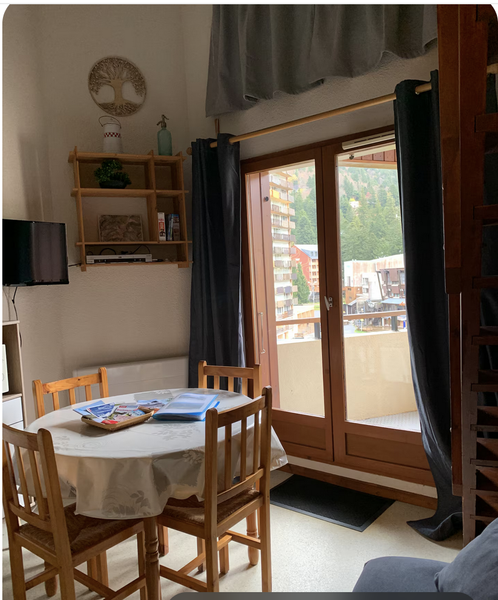 Studio 5 personnes avec balcon au centre de la station avec accès direct aux pistes et aux remontées mécaniques pour l'ensemble du domaine skiable, location skis, commerces et restaurations à moins de 5min à pieds. Accès WIFI.