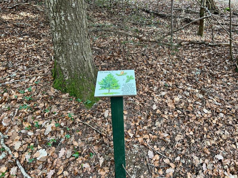 Un sentier déambule à travers des essences forestières diversifiées. D’agréables clairières incitent au repos et à l’écoute d’une faune aviaire très productive en chants mélodieux et variés.