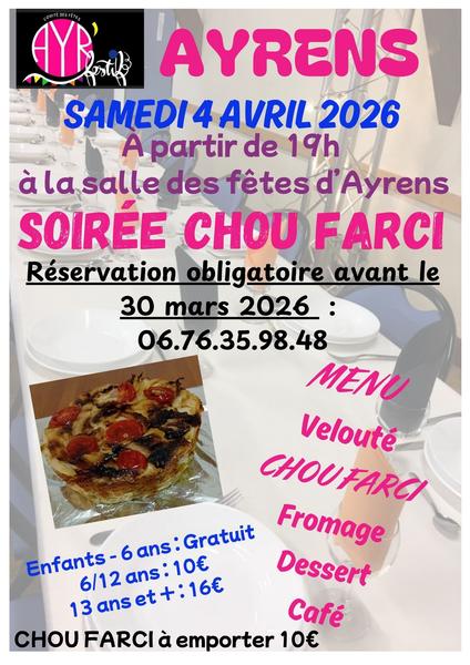 Repas – soirée chou farci à la salle des fêtes d'Ayrens.