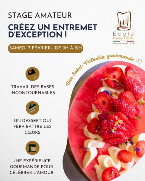 Ecole Christian Vabret vous invite à vivre une expérience pâtissière unique lors de son stage amateur : "Une Saint-Valentin gourmande "