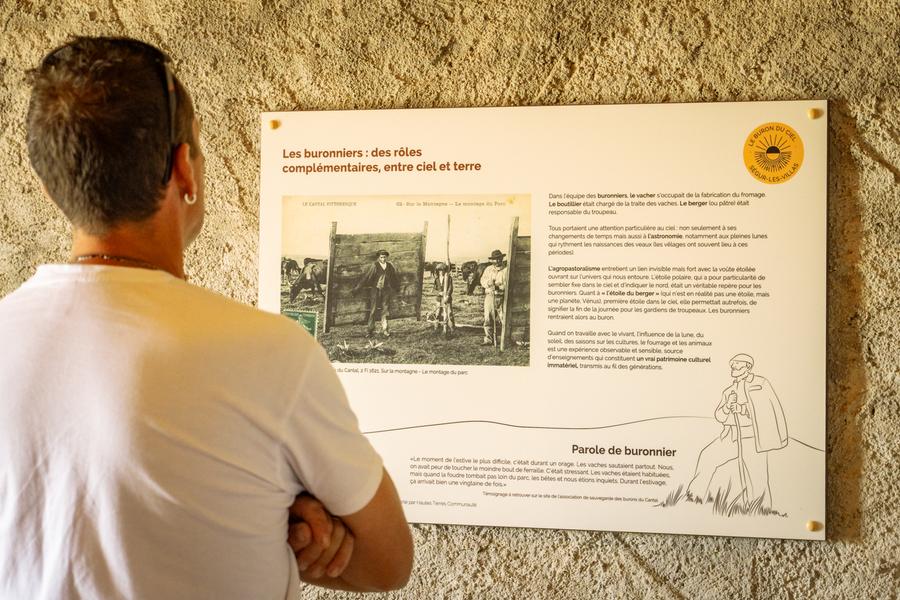 Les burons sont de petits habitats en pierre construits en altitude et loin des villages, constitués d’un ou plusieurs bâtiments (cave, laiterie, bédélat…) couverts en lauzes ou en ardoises. C’est dans la solitude des grands espaces que les agriculteurs vivaient environ six mois de l’année, durant la belle saison, en compagnie de leurs troupeaux. Traite des vaches, fabrication du fromage, naissance des veaux, les journées s’écoulaient dans un confort rustique.