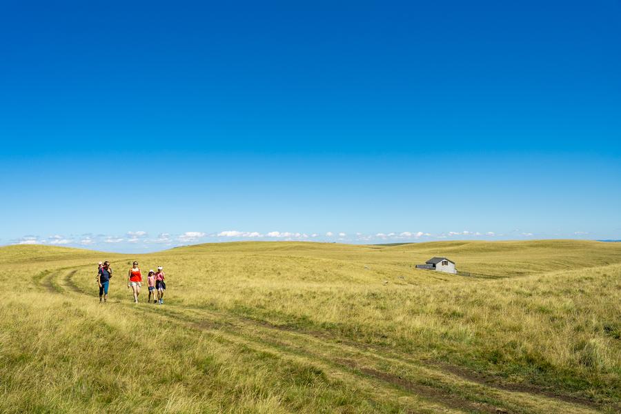 Sentier d'accès au Buron du Caire, restauré dans le cadre du projet REPAIRES, initiative de rénovation et de valorisation des burons; co-porté par Hautes Terres Communauté et Vèze. Itinéraire familiale au cœur du Cézallier avec de magnifiques panoramas.