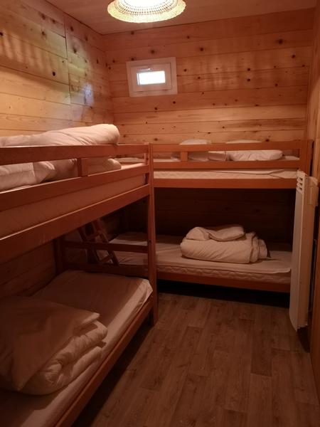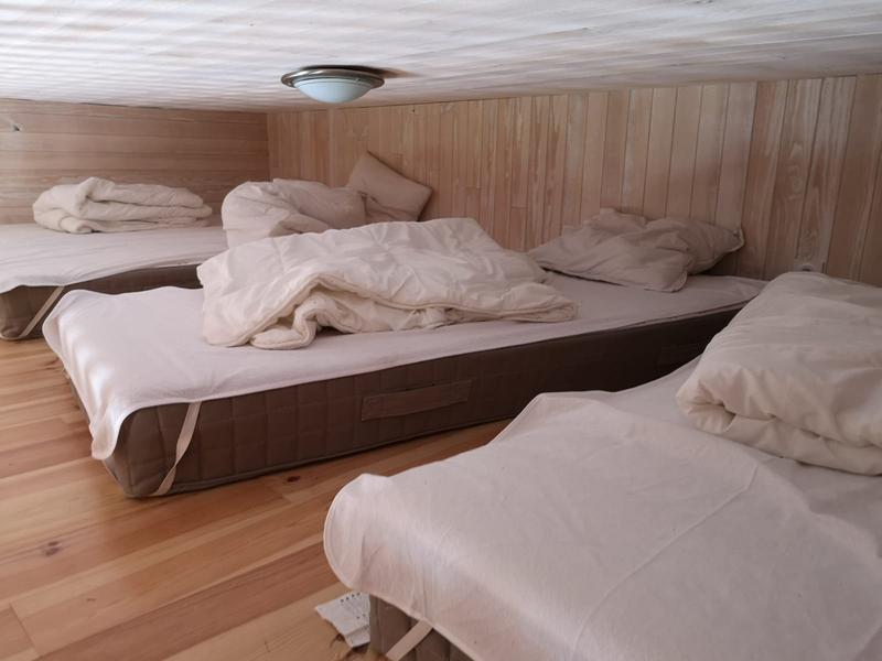 ch 1 : 1 lit en 140, une penderie – chambre 2 : 1 lit 140, une penderie, une douche et des WC séparés – ch 3 : 2 lits superposés – en mezzanine : 4 matelas séparés au sol.