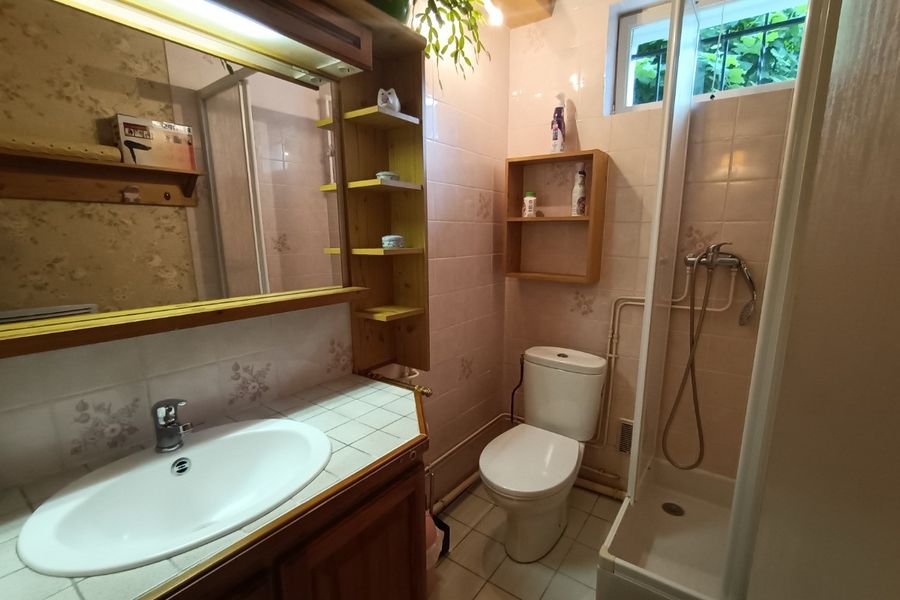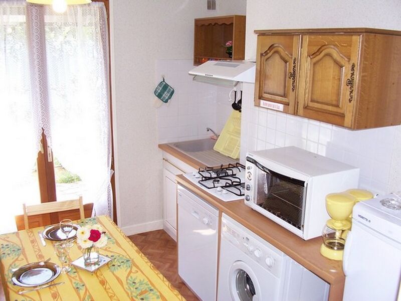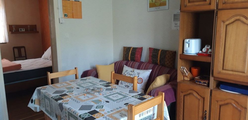 Appartement composé d'un séjour avec coin cuisine, une chambre (1 lit 2 pers), salle d'eau avec WC. Lit d'appoint. Chauffage électrique. Terrain clos dont une partie est réservé au locataire, parking.