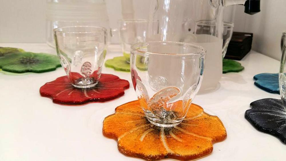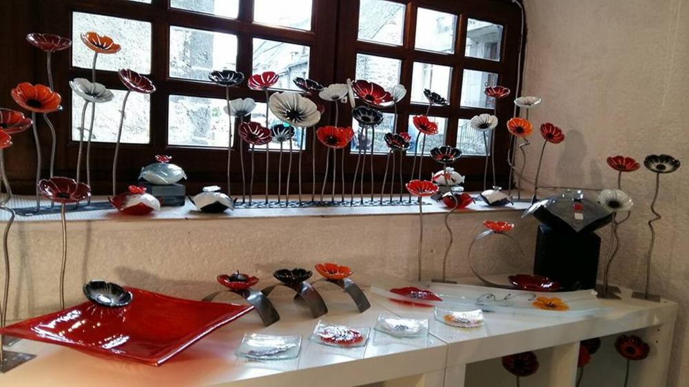 Pascal travaille le verre au chalumeau. Maryline travaille le verre fusing thermoformage, ainsi que la fabrication des bougies naturelles.