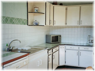 Appartement à l'étage, une grande cuisine, un séjour, deux chambres, un canapé convertible, deux salles de bain. Chauffage électrique individuel.